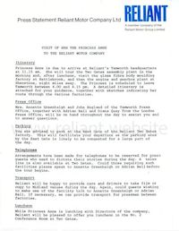 Visit of HRH The Princess Anne to the Reliant Motor Company