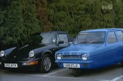 In one of the episodes of this series one of the comedy sketches involves two men parking their Porsche. One boast of his new alarm as he activates it to protect the car and comments, “No one will steal that”. The other then goes one better by activating his anti-thef alarm which turns his Porsche into a Reliant Robin. He then quips, “No one will steal that either”.